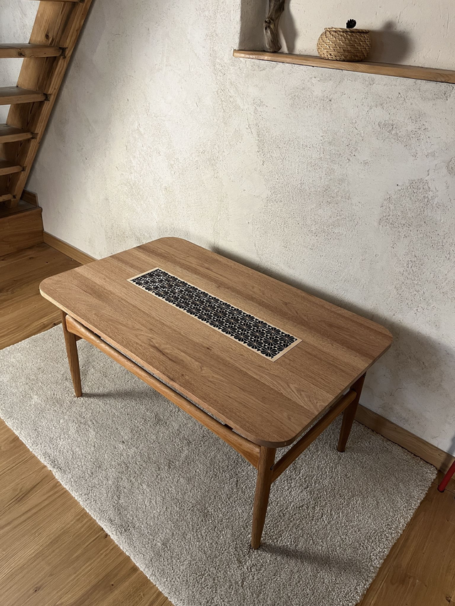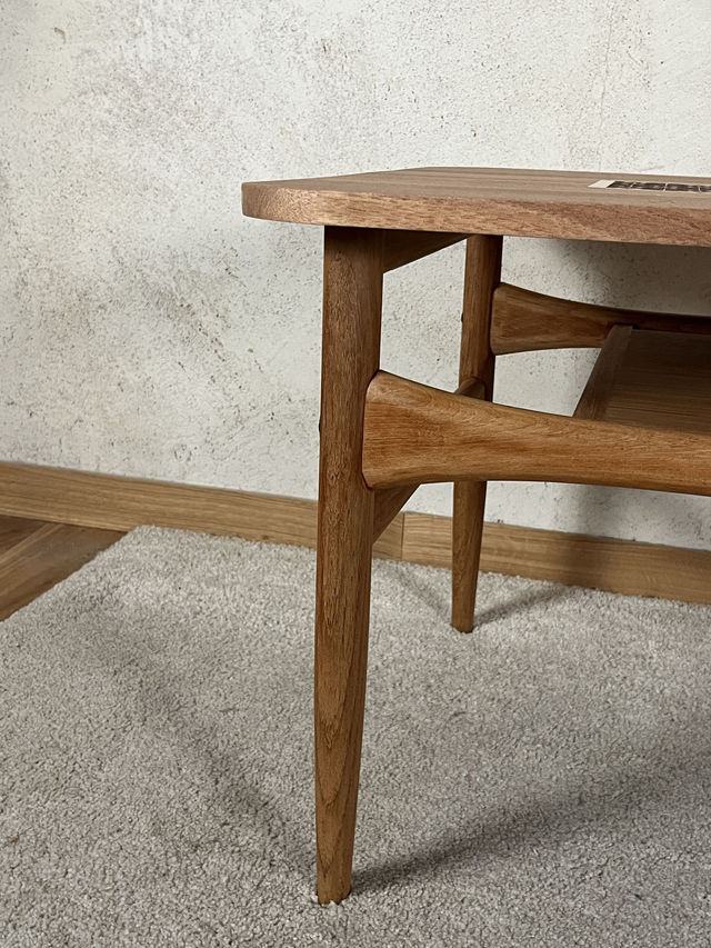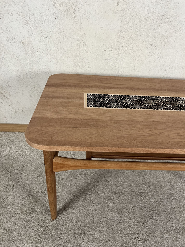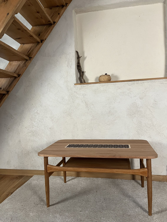 Cette table basse aux lignes scandinaves possède un aspect épuré et un plateau unique. Pour un résultat 100% de bois de réemploi.