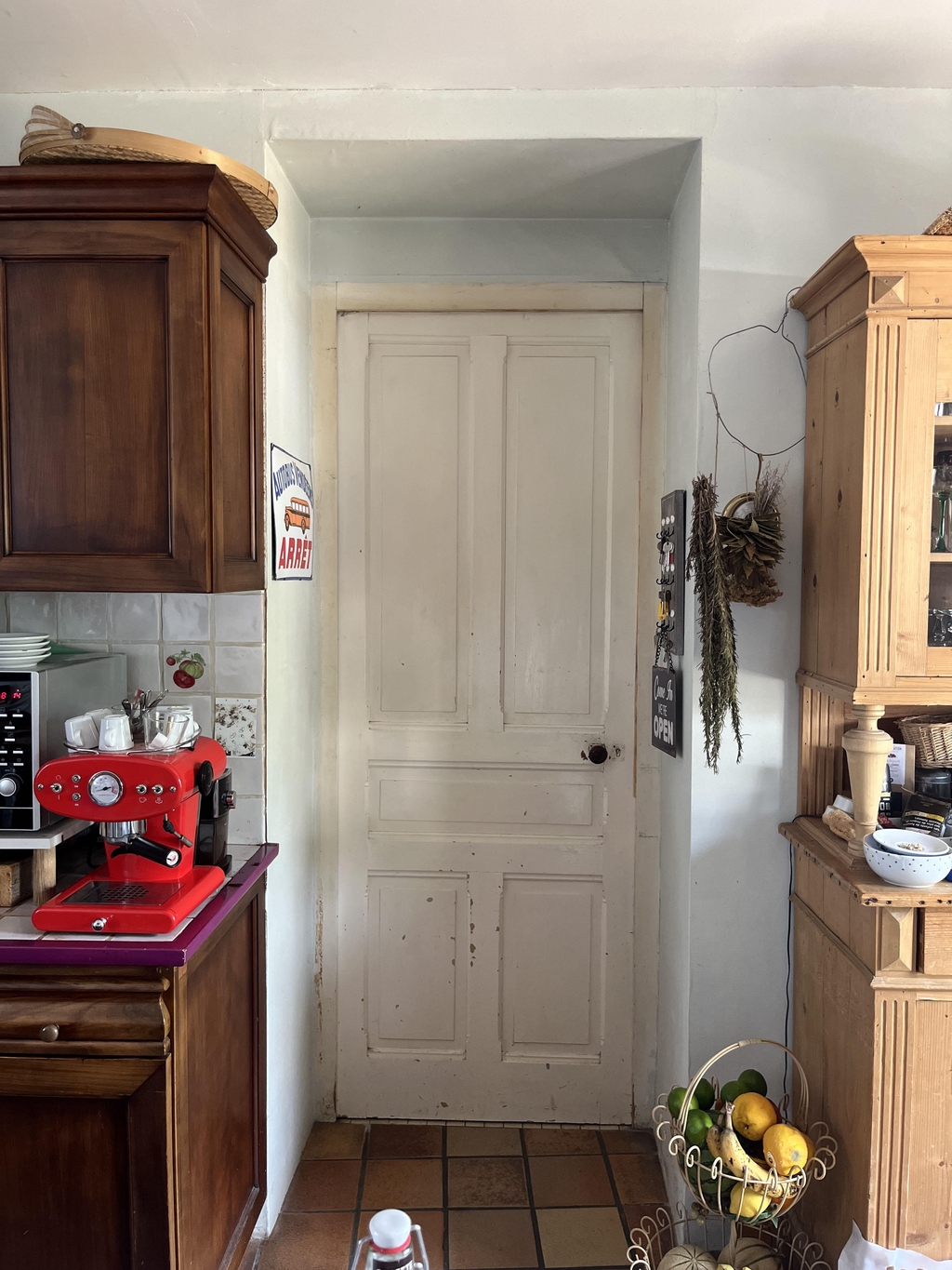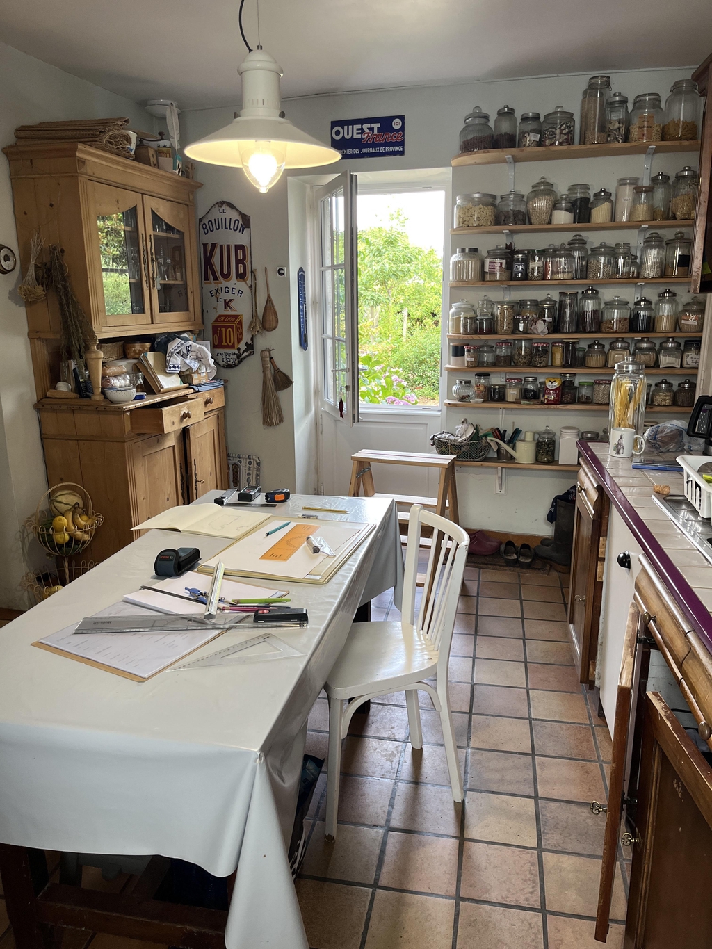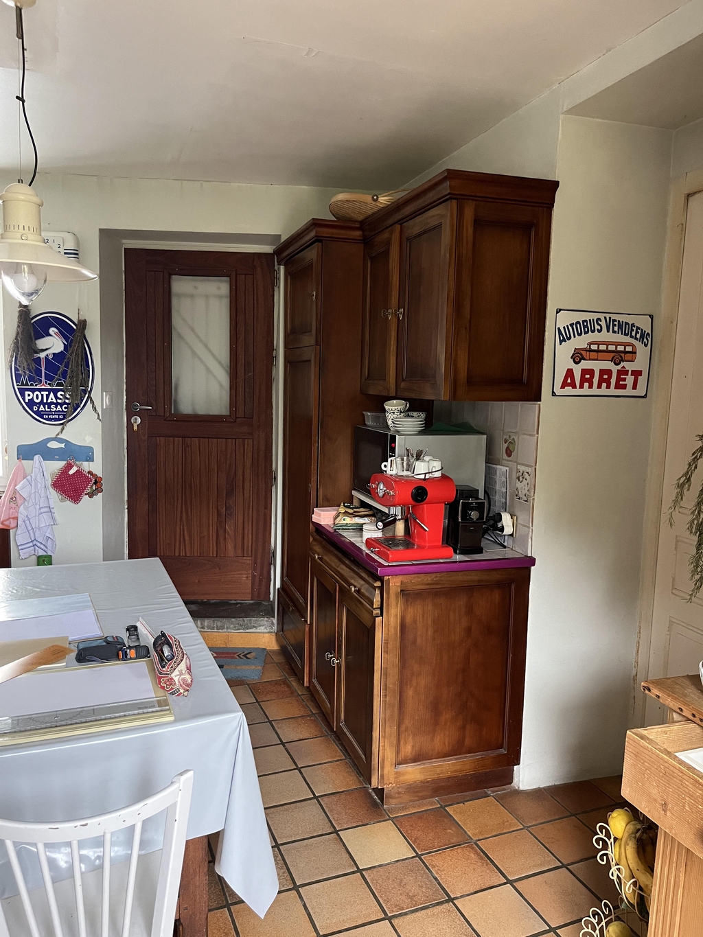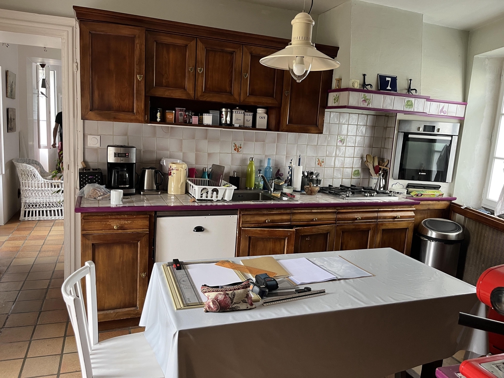 La suppression de la porte donnant sur la rue permet de créer un vrai espace de vie dans la cuisine avec un coin repas.